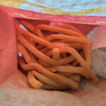 一本一本が長いのはアメリカ産のラセットバーバンクという長細いジャガイモを使っているからです。サクサクした食感だが内部にはホクホク感もあります。