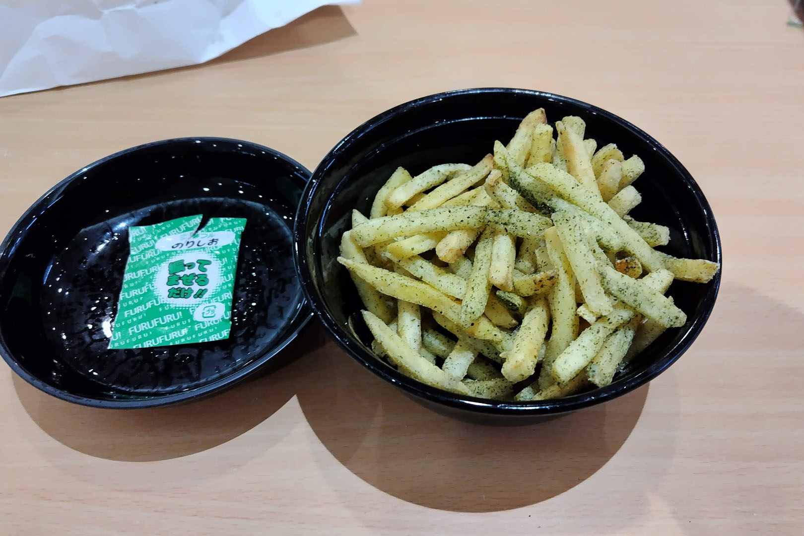 ポッポの通常のフライドポテトとは違って紙袋に入っていた。提供時によく振って食べるようにいわれる。マクドナルドとほぼ同じ太さのシューストリングカットで皮は残っていない。一般的なコンソメ風に比べると甘辛い味がはっきりついていて、どこかスナック菓子を連想させる味わい。マズいわけがない。